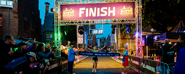 Alkmaar danst op hardloopschoenen door de binnenstad tijdens de Alkmaar City Run by Night op 13 mei 2026. Zoโn 11.000 hardlopers verschijnen aan de start van deze run, waarbij het parcours, 5 of 10 kilometer, door de sfeervolle straten en over gezellige horecapleinen loopt.